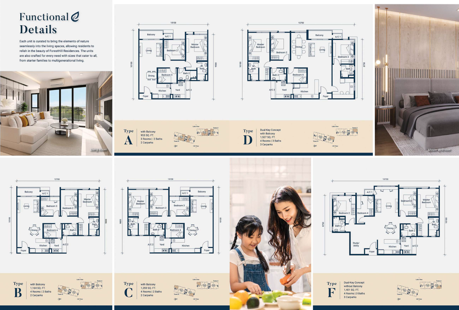 ForestHill Residences is conceived as a low-density lakeside sanctuary, where the natural environment is an integral part of the experience. Surrounded by hills and adjacent to forest reserves, residents enjoy a refreshing, green backdrop and a sense of escape — all while remaining well connected to urban amenities. Each unit layout is crafted to bring nature in: generous windows, optional balconies, and strategic orientation to balance light, privacy, and views. ForestHill also features sustainable touches like EV-charging pods to support greener lifestyles.